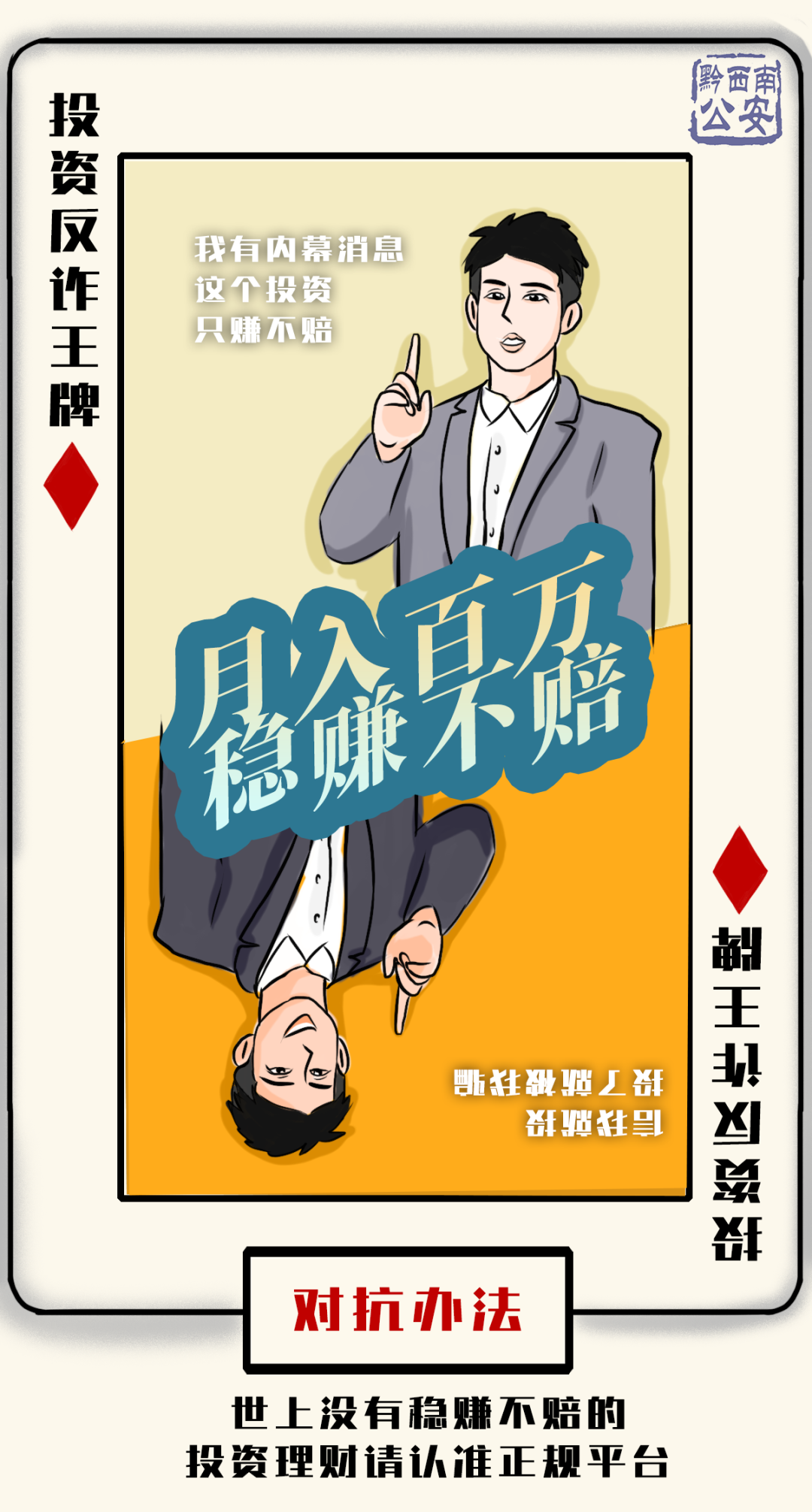 诈骗分子以推荐个人股票、办理投资等名义,向受害人收取服务费、会员费、解冻费、验证金等费用,或谎称有内幕消息,保证稳赚不赔,吸引用户投资后完成诈骗。