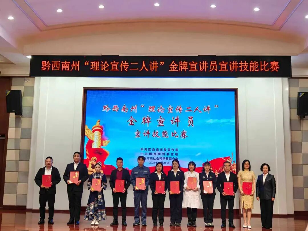 10月31日,由州委宣传部、州委党校、州社科联联合举办的黔西南州“理论宣传二人讲”金牌宣讲员宣讲技能比赛在富康会展中心举行,州委教育工委组织参赛队参加比赛,经过19个队的激烈竞争角逐,州委教育工委参赛队段志喜和孙黎老师两位带来的《弘扬教育家精神,做新时代添灯人》最终获得全州第三名二等奖的优异成绩,《弘扬教育家精神,做新时代添灯人》宣讲稿件获全州优秀宣讲稿件二等奖。