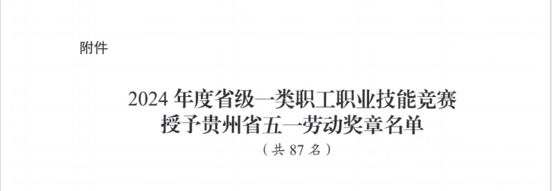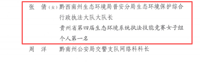 2024年,贵州省总工会联合贵州省人力资源和社会保障厅等单位,组织开展了33项省级一类职工职业技能竞赛。黔西南州生态环境局普安分局张倩同志获贵州省第四届生态环境系统执法技能竞赛女子组个人第一名。为表彰先进,营造尊重技能、重视人才和争当技能型人才的良好社会氛围,贵州省总工会决定,授予张倩等87名优秀个人“贵州省五一劳动奖章”。