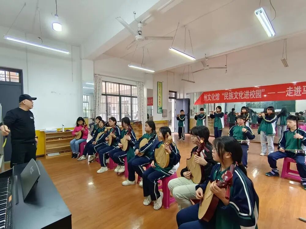 “文化馆宣传周”民族文化进校园活动走进多所学校。在兴义市笔山书院、第六中学、思源实验中学开展舞蹈培训;在黔西南民族职业技术学院、马岭中学进行“八音坐唱”教学。同学们在专业老师指导下,认真学习舞蹈与“八音坐唱”技艺。