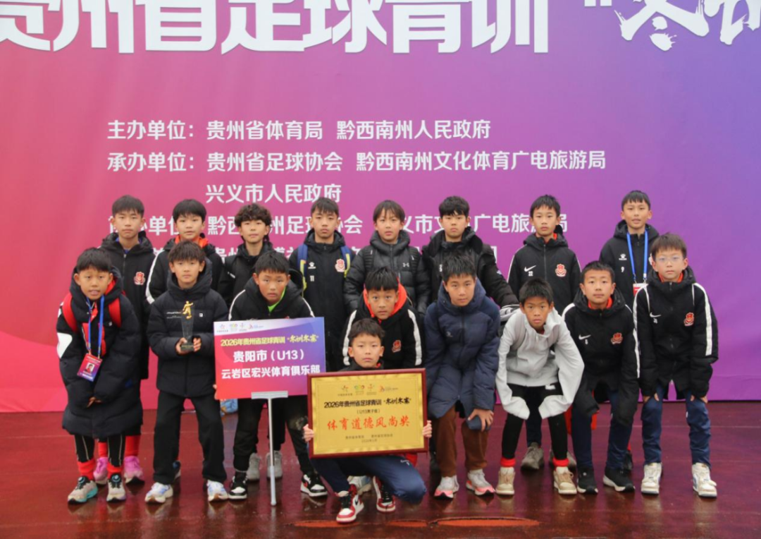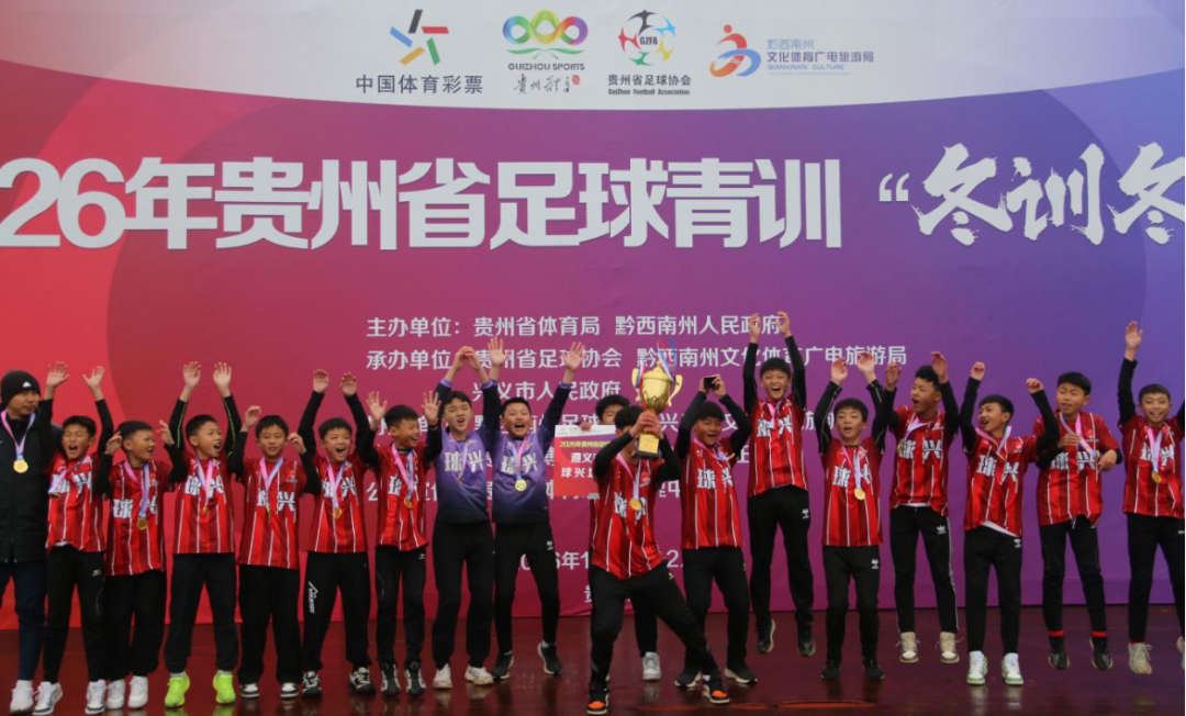 2026年2月1日,2026年贵州省足球青训“冬训冬赛”U13组赛事在黔西南州兴义市圆满落幕。经过多轮激烈角逐,在女子组比赛中,贵州师范大学U13女足荣获冠军、遵义市体育运动学校荣获亚军、贵阳市体育中学荣获季军;在男子组比赛中,遵义市球兴足球俱乐部荣获冠军、贵阳林城之星俱乐部荣获亚军、广东铭途足球俱乐部荣获季军。