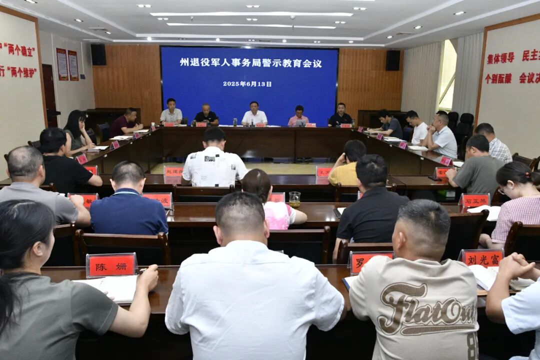 6月13日下午,州退役军人事务局召开警示教育会议,传达学习全省集中整治违规吃喝动员部署会议精神、6月13日上午州委常委会会议精神,通报有关案例。党组书记、局长朱曼华主持会议并讲话,党组成员出席会议,机关和下属事业单位全体干部职工、公益性岗位、临聘人员参加会议。