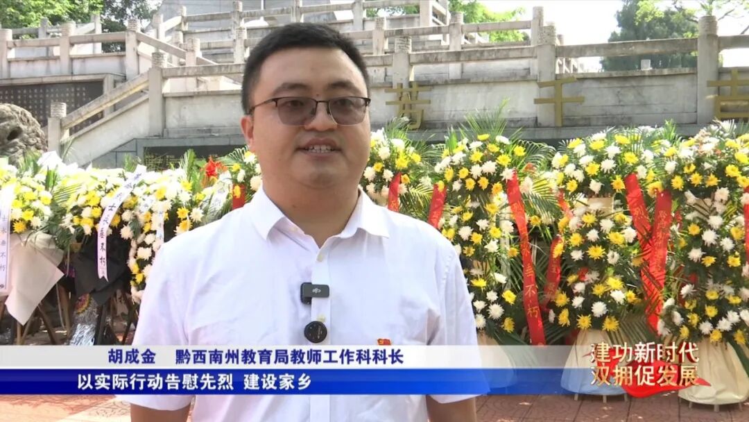 黔西南州教育局教师工作科科长中共黔西南州教育局支部委员会书记胡成金 我们将把英烈精神融入日常教育教学,持续开展主题班会、红色研学事迹宣讲等活动,教育引导青少年树立正确历史观、价值观,珍惜当下、立志成才,以实际行动告慰先烈、建设家乡。
