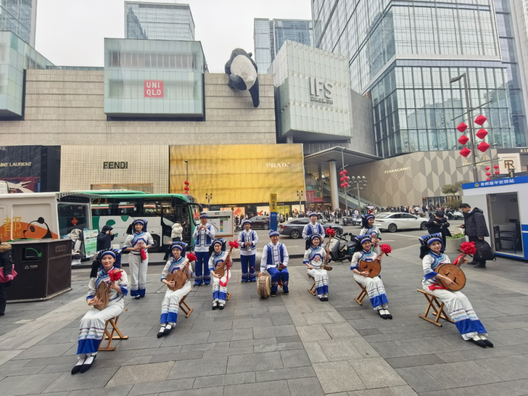 本次活动在成都东站熊猫专列城市会客厅及春熙路开展了多场“黔西南州风情快闪秀”,布依族群舞《梳花》和苗族《板凳舞》,让现场观众切身感受黔西南布依族苗族姑娘舞姿的灵动与秀美;国家级非物质文化遗产《八音坐唱》古朴悠扬的旋律,仿佛让观众穿越时空,聆听到历史的回响;压轴登场的彝族舞蹈《阿妹戚托》,演员们身着绚丽的服饰,以灵动的舞姿、饱满的热情,踢踏着变换舞蹈队形,将这支被誉为“东方踢踏舞”的独特魅力展现在观众面前,现场瞬间响起阵阵掌声和欢呼声,在场市民无不为之震撼。