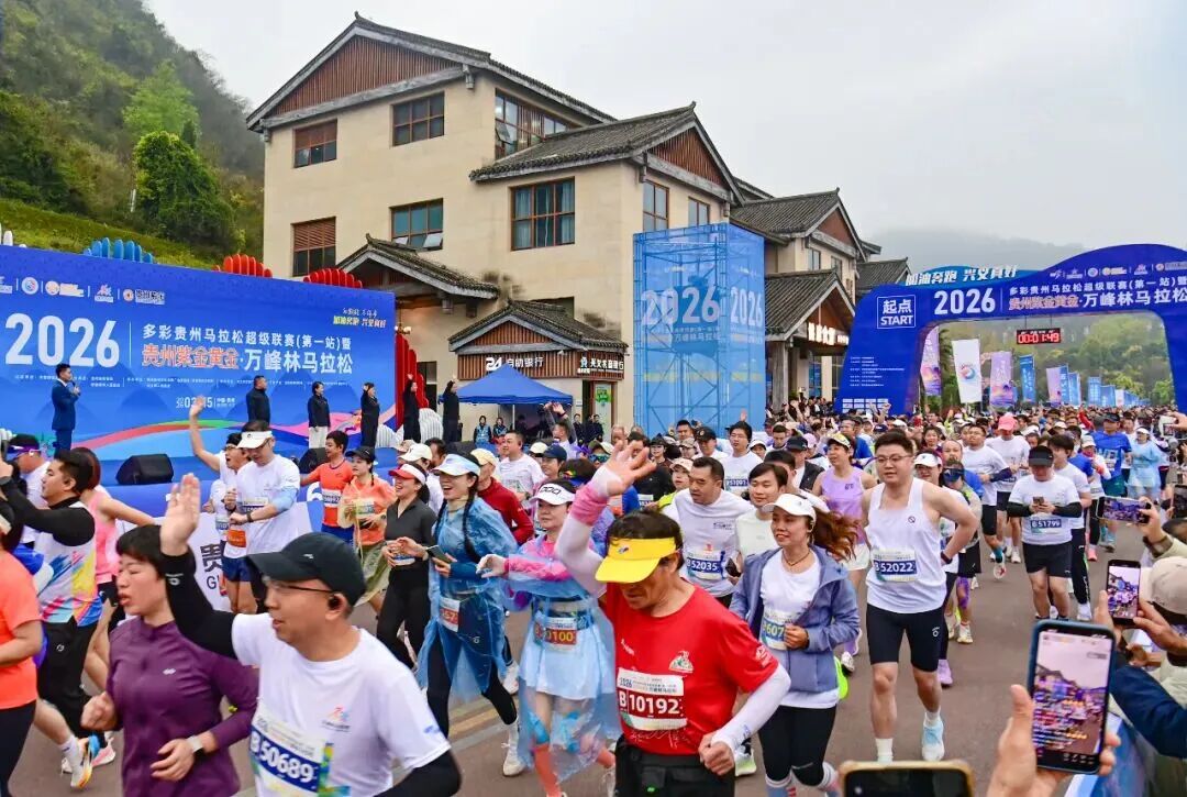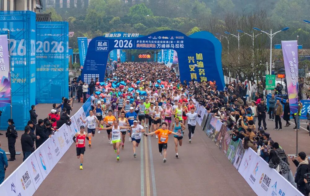 3月15日上午,2026多彩贵州马拉松超级联赛(第一站)暨贵州紫金黄金・万峰林马拉松在兴义市阳光谷旅游度假区鸣笛开跑。来自全国各地的6000名马拉松爱好者齐聚“万峰成林处、阳光黔西南”,在喀斯特山水画卷中奋力奔跑。
