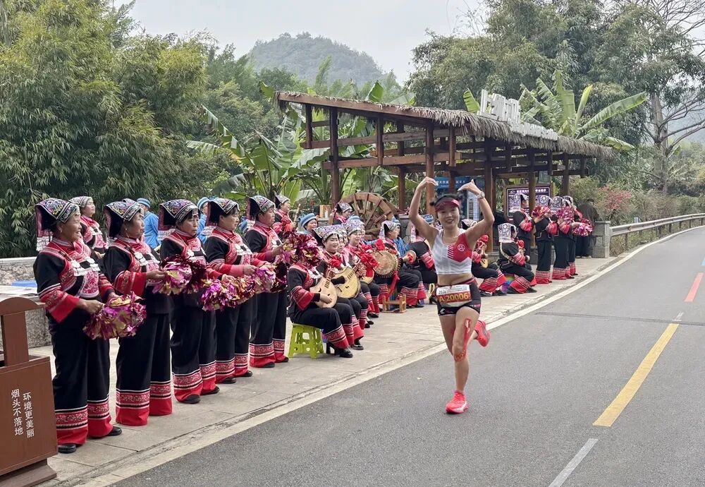 赛事起点设于国家4A级旅游景区阳光谷旅游度假区,全程马拉松和半程马拉松终点分别设在国家5A级旅游景区万峰林的峰潮集和民族文化源。赛道串联蘑菇酒店、西南广场、乡愁集市、将军桥、上纳灰村、福字田等特色景点,一路穿行峰林、田园与民族村寨,将自然风光、民族文化、乡村振兴成果融为一体,被广大跑友誉为“中国最美赛道”。沿线共设置21个氛围营造点,其中包含11个民族文化展演点,为跑者带来了丰富的奔跑体验。